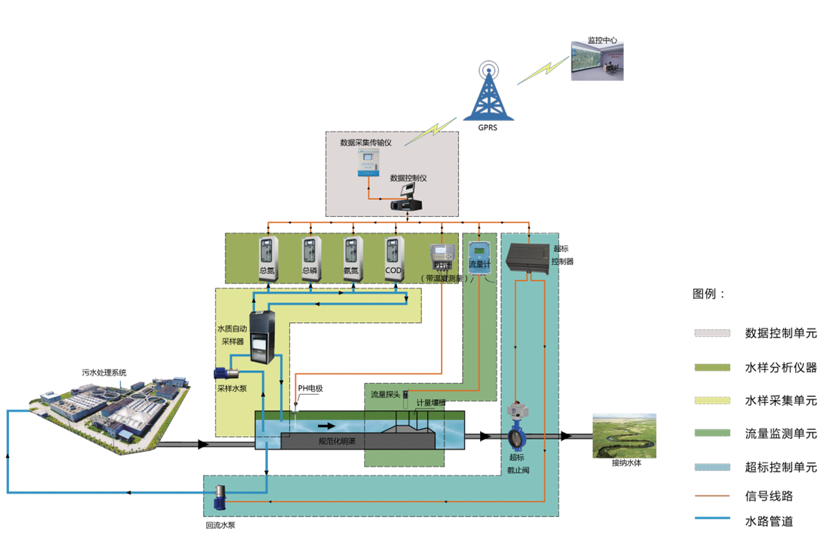 污染源水質(zhì)在線監(jiān)測(cè)系統(tǒng)適用于各排污企業(yè)對(duì)污染源水質(zhì)排污監(jiān)控及控制的需求。該系統(tǒng)根據(jù)2020年國(guó)家技術(shù)規(guī)范(HJ353-2019)和其他標(biāo)準(zhǔn)進(jìn)行設(shè)計(jì),由實(shí)現(xiàn)水污染源流量監(jiān)測(cè)、水污染源水樣采集、分析及分析數(shù)據(jù)統(tǒng)計(jì)與上傳等功能的軟硬件設(shè)施組成的系統(tǒng)。該系統(tǒng)具有監(jiān)測(cè)數(shù)據(jù)實(shí)時(shí)采集、傳輸、管理、質(zhì)控、反控等功能,還具有水質(zhì)治理設(shè)施運(yùn)行情況分析功能和排污總量控制功能。
